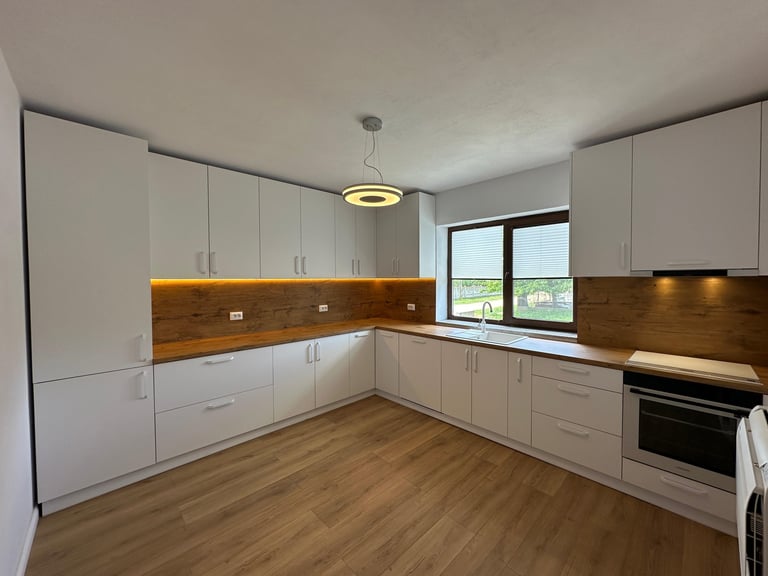 De la proiecte compacte până la bucătării deschise, personalizăm totul – de la blat până la mânere.